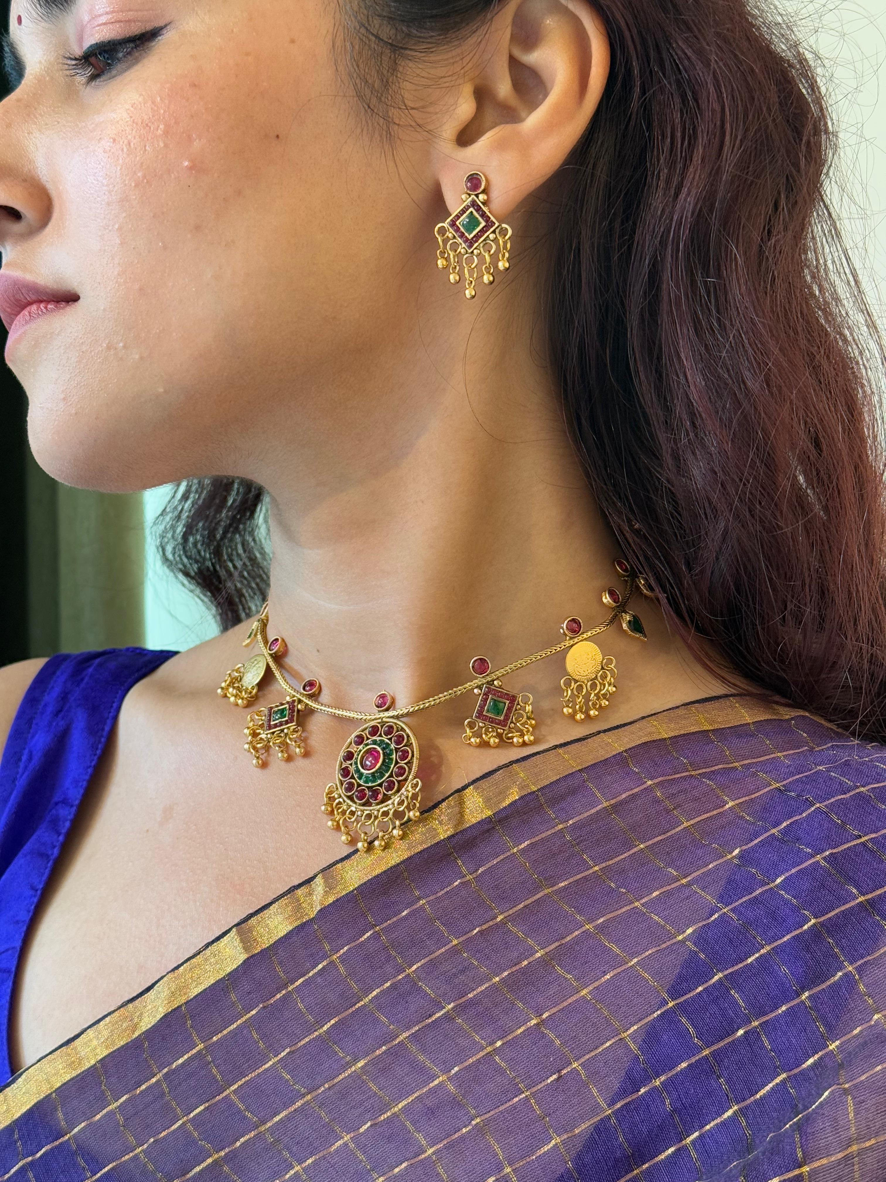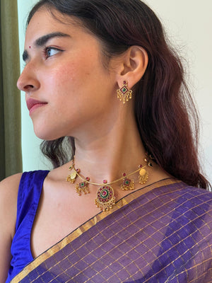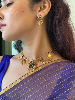 Elevate your style with the Apsara Necklace Set-VJC, a perfect blend of traditional craftsmanship and modern elegance. This exquisite set enhances any outfit, making it ideal for both festive occasions and contemporary events. Designed to highlight your natural beauty, it adds a graceful charm that captivates at every glance. Embrace timeless sophistication with this versatile jewelry set that effortlessly complements your unique taste.