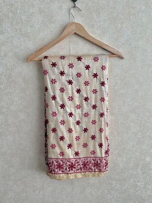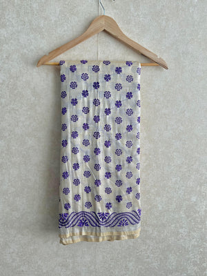 Elevate your festive wardrobe with this exquisite Chanderi saree from our Christmas collection. Crafted entirely in luxurious Chanderi material, this off-white beauty features intricate thread work throughout, showcasing a stunning flower design that commands attention. The pallu boasts a heavy, ornate design that adds dramatic elegance to your ensemble. Perfect for celebrations and special occasions, this saree comes with a coordinating blouse piece, ensuring you're ready to make a lasting impression. The timeless off-white shade pairs effortlessly with traditional jewelry, while the detailed craftsmanship reflects authentic Indian textile artistry. Drape yourself in sophistication and grace with this must-have festive piece.