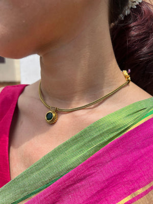 Elevate your elegance with the Bindhu AD-VJAD005 set, featuring a premium AD design accented by a stunning green stone. This simple yet sophisticated neckpiece paired with matching earrings brings a touch of timeless charm to any outfit. Perfect for special occasions or everyday grace, it offers a refined look that captivates effortlessly.