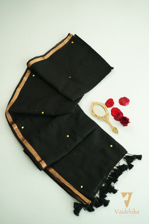 Elevate your wardrobe with the Chumak Gini Black Saree, featuring exquisite handloom craftsmanship and a striking border that adds timeless elegance. Perfect for special occasions or festive celebrations, this saree blends traditional artistry with contemporary style, ensuring you stand out with grace and sophistication. Experience the comfort and charm of handwoven fabric that complements every silhouette beautifully.