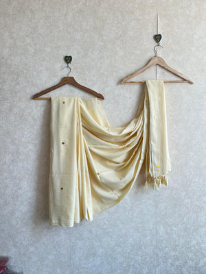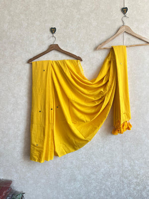 Elevate your everyday style with this stunning pure mulcotton saree, crafted for effortless elegance. Adorned with shimmering golden sequins throughout the body, it catches light beautifully with every movement. Coordinating tassels in the same rich hue complete the sophisticated look. Available in 7 gorgeous shades, you'll find the perfect tone to match your complexion and wardrobe. Ideal for casual occasions, this saree combines comfort with understated glamour, making it a versatile essential for the modern woman.