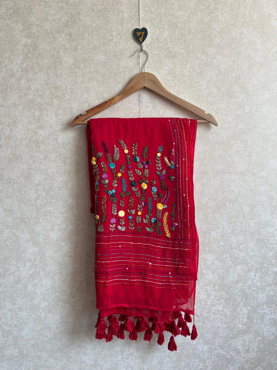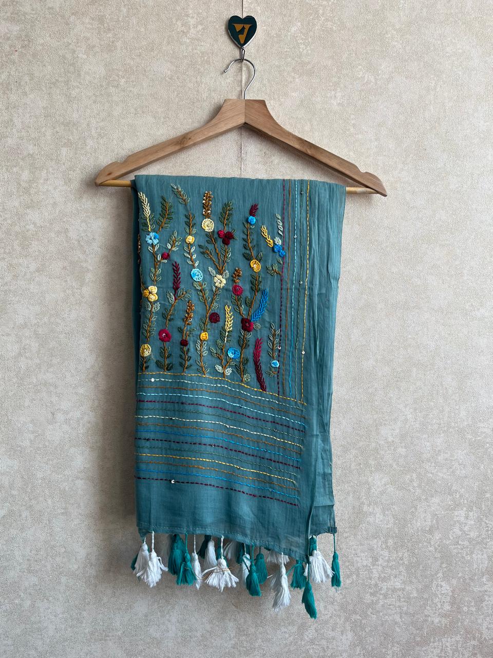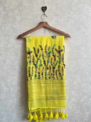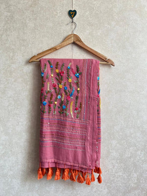 Experience the allure of the Dishna Saree, a stunning creation in premium mull cotton that combines comfort with sophistication. Every inch features intricate handwork, showcasing the dedication of skilled artisans who pour their expertise into this elegant piece. The classy design and refined aesthetic make it perfect for celebrations, festivals, or moments when you want to feel truly special. This is not just a saree—it's wearable art. Please allow extended delivery time as each piece undergoes meticulous handcrafting to guarantee the exceptional quality you deserve. Embrace timeless beauty with a saree that tells a story of tradition and elegance.
