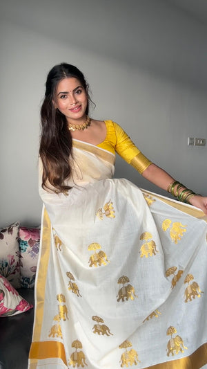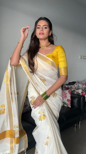 Experience timeless elegance with the Golden Hathi Saree-VCT017. Featuring a sophisticated elephant motif, this tissue saree combines traditional charm with subtle opulence. Its lightweight fabric ensures comfort throughout the day, while the intricate design adds a regal touch to any occasion. Perfect for celebrations and formal events, this saree elevates your style with grace and poise.