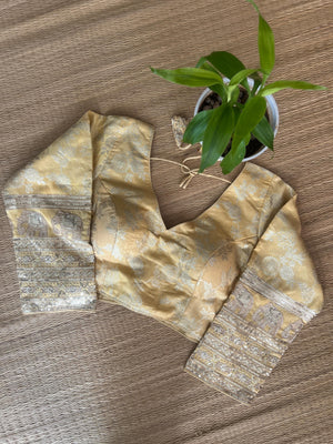 V-NECK BROCADE BLOUSE WITH STICTHED FINISH