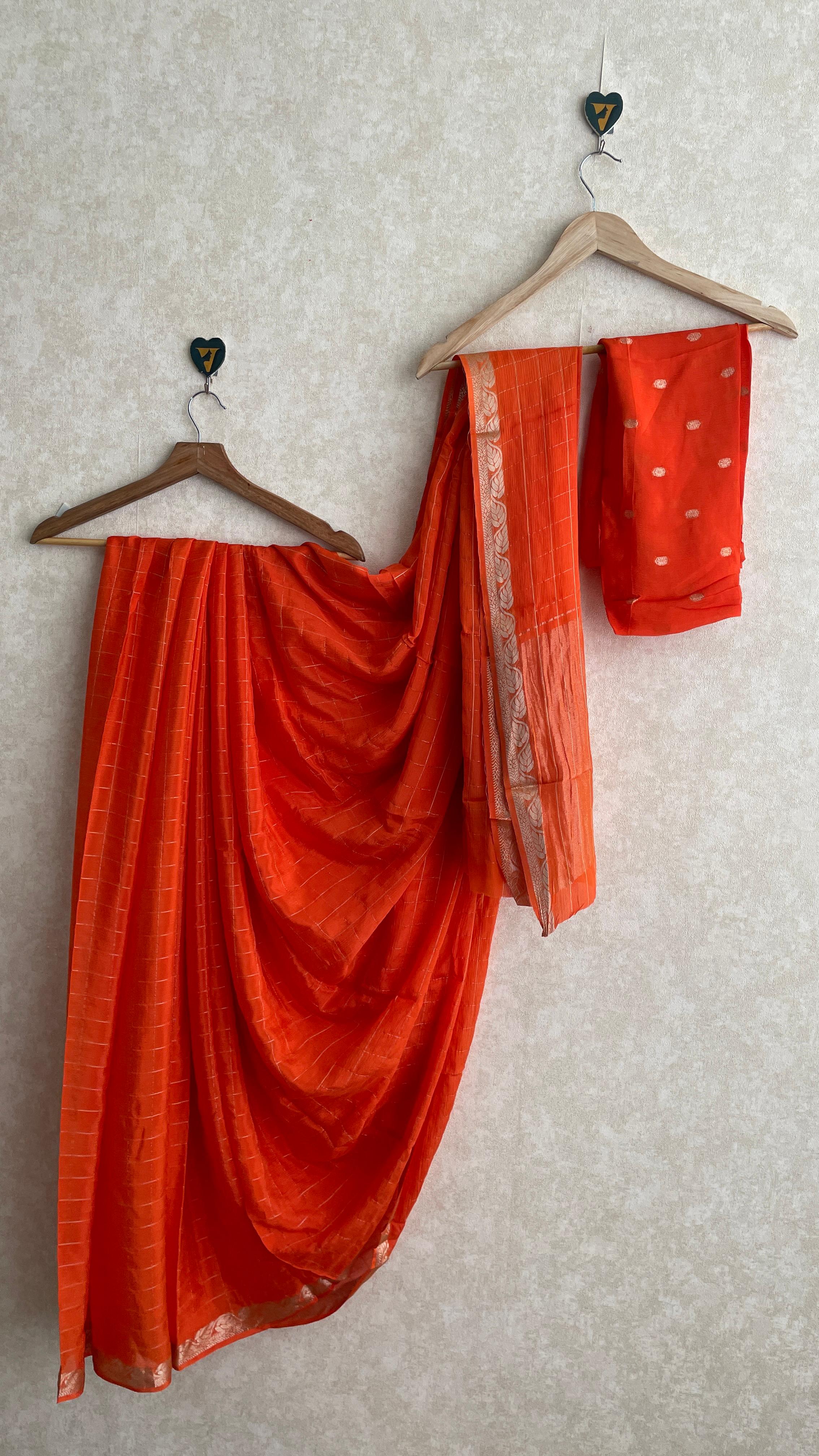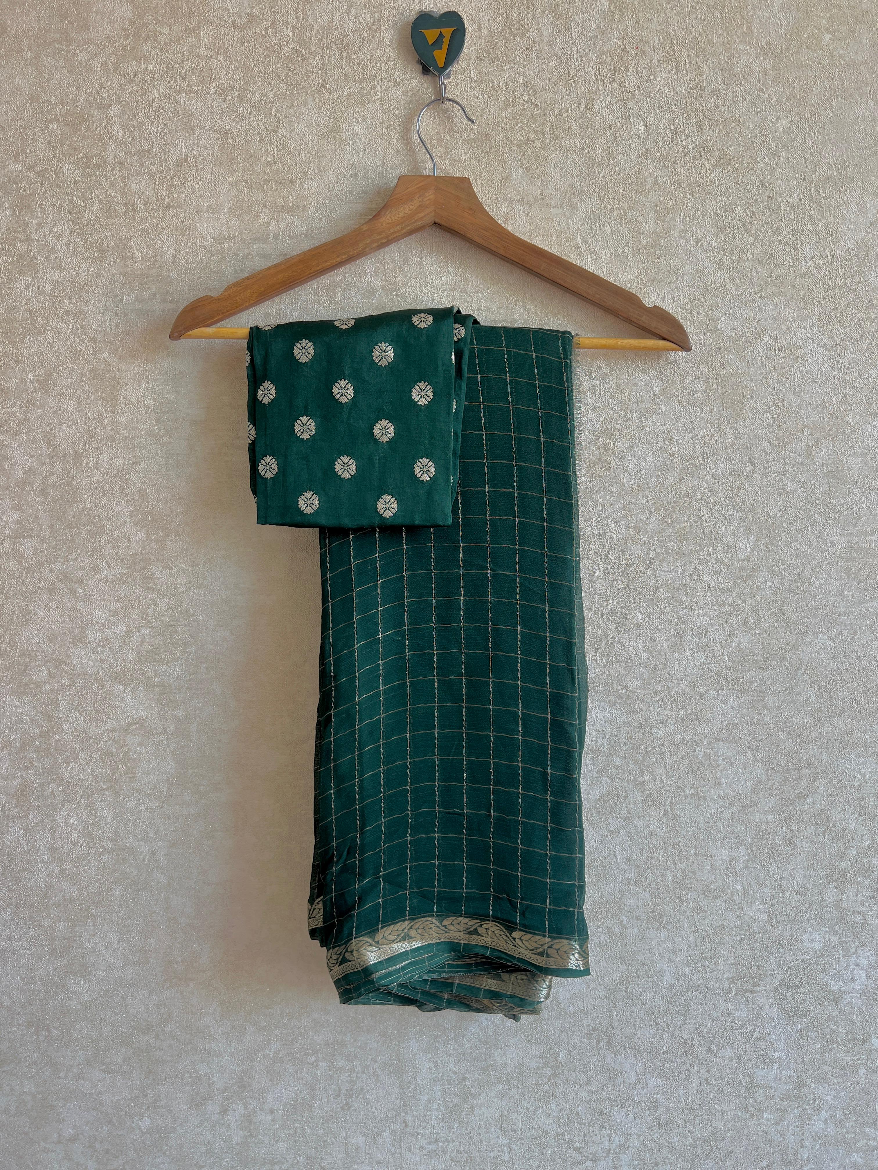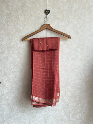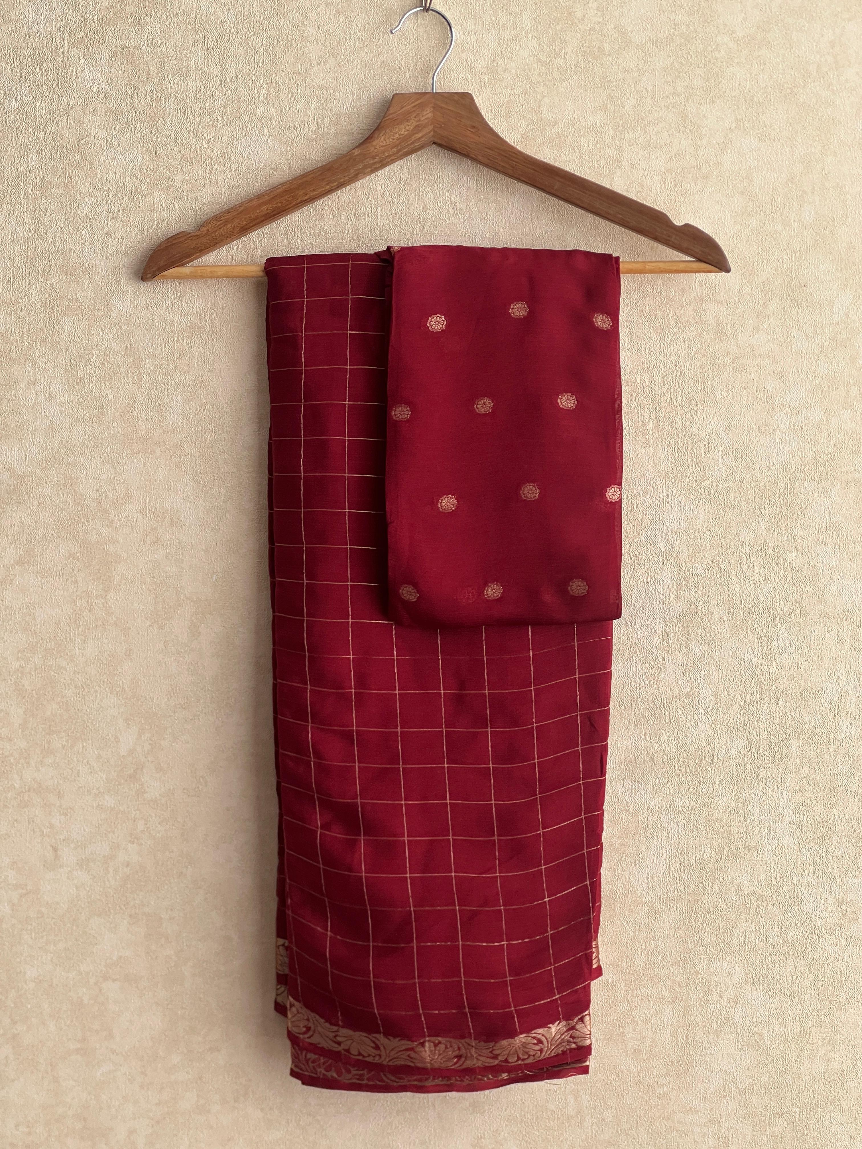 Experience elegance with our viscose shinon fabric featuring a delicate small silver checks design that adds subtle shimmer to your look. This set includes a matching blouse and is available in two sophisticated shades, letting you choose the perfect tone for any occasion. The soft, breathable texture ensures all-day comfort while enhancing your style effortlessly. Embrace a refined and graceful wardrobe essential that combines classic design with modern appeal.