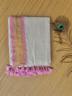Elevate your traditional wardrobe with the Kum Kum Saree in a delicate pink hue. This handloom masterpiece blends timeless craftsmanship with elegant simplicity, offering a graceful drape that enhances your silhouette. Perfect for festive occasions or special gatherings, its soft texture ensures comfort while making a striking style statement. Embrace the charm of authentic handwoven artistry with this exquisite saree.
