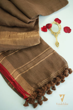 Experience timeless elegance with the Linen Chocolate Saree. Crafted from breathable linen, it offers a comfortable, lightweight drape perfect for all-day wear. The rich chocolate hue adds a touch of sophistication, making it ideal for both casual outings and formal events. This saree combines style and comfort effortlessly, enhancing your natural grace with every wear. Elevate your wardrobe with this versatile, classic piece.