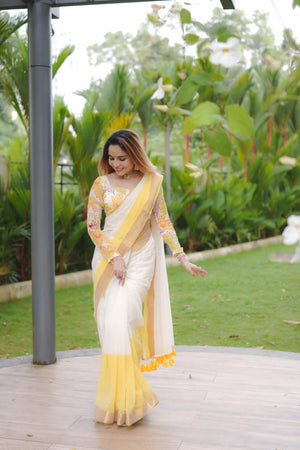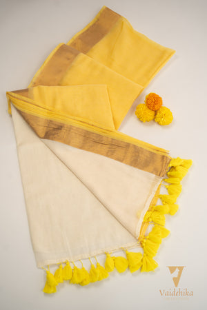Embrace tradition with the vibrant yellow Manjal handloom saree, a perfect blend of elegance and craftsmanship. Its rich texture and bright hue make it ideal for festive occasions and celebrations, ensuring you stand out with grace. Handwoven with care, this saree offers both comfort and style, making it a timeless addition to your wardrobe. Elevate your ethnic collection with this stunning piece that reflects cultural heritage and modern charm.