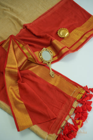 Elevate your wardrobe with the Meghana Red Saree, a stunning handloom masterpiece that blends tradition with elegance. Its vibrant red hue and intricate weaving make it perfect for festive occasions and celebrations. Crafted with care, this saree offers both comfort and style, ensuring you stand out gracefully wherever you go. Embrace timeless beauty with the Meghana Red Saree.