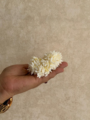 Add a festive touch to your Onam look with our Mulla scrunchies. Crafted from soft, delicate mulla fabric, these scrunchies offer a comfortable hold without damaging your hair. Their subtle scent adds a refreshing charm, making them perfect accessories for the season. Elevate your traditional attire effortlessly with these elegant, scented scrunchies from our exclusive Onam collection.