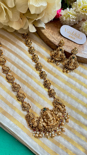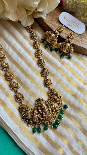 Enhance your Onam celebrations with the Nagas Green Haram, a beautifully designed pendant haram that captures the essence of tradition and elegance. Its rich green hues make it a perfect accessory to complement your festive attire, adding a graceful and vibrant touch. Crafted to highlight your natural beauty, this haram ensures you stand out during the festival with timeless charm and sophistication.