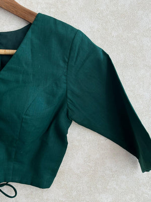 Elevate your ethnic wardrobe with the Nydhra Blouse, a stunning piece that seamlessly blends traditional elegance with contemporary comfort. This exquisite blouse features a princess cut silhouette that flatters your frame, paired with a padded back for enhanced support and structure. The open dori closure at the back adds a touch of sophistication, while the graceful curve V-neckline draws attention to your décolletage. Elbow-length sleeves provide the perfect balance of coverage and style, making it ideal for both festive occasions and everyday wear. Crafted with meticulous attention to detail, this blouse is your go-to choice for refined, versatile styling.
