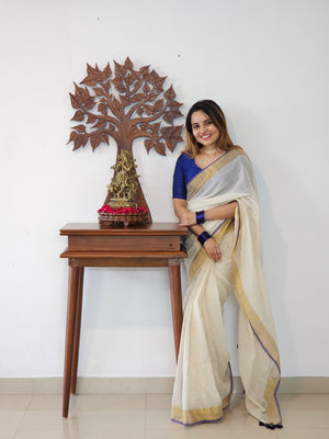 Elevate your elegance with the Parvathy Navy Blue Saree, a timeless handloom masterpiece. Its rich navy hue and intricate weaving bring a sophisticated charm perfect for any occasion. Experience the blend of tradition and style that enhances your grace effortlessly.