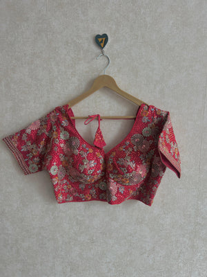 Elevate your bridal look with the Shrutika Bridal Blouse from our exclusive Onam collection. Featuring a comfortable padded knot lining and adjustable half sleeves, this blouse ensures a perfect fit and elegant silhouette. Designed to complement your special day, it blends traditional charm with modern comfort for a stunning bridal ensemble.