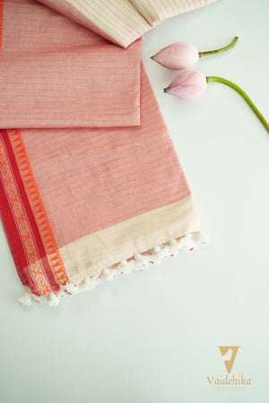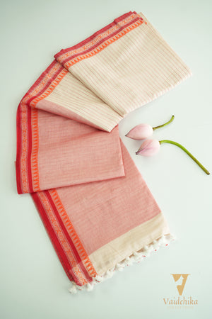 Elevate your wardrobe with the Ahalya Red Saree, a stunning handloom masterpiece that blends tradition with elegance. Its vibrant red hue and intricate weaving make it perfect for festive occasions and celebrations. Crafted with care, this saree offers both comfort and style, ensuring you stand out gracefully wherever you go. Embrace timeless beauty with the Ahalya Red Saree and make every moment memorable.