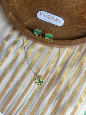 Embrace understated elegance with this exquisite Single Lotus Invisible Necklace. Featuring a delicate golden lotus pendant suspended on an invisible chain, this piece seamlessly blends spiritual symbolism with modern sophistication. The lotus, revered for its beauty and resilience, becomes a subtle statement of grace around your neck. The innovative invisible chain design creates an illusion of the pendant floating effortlessly, making it perfect for layering or wearing solo. Includes matching golden earrings to complete your coordinated look. Ideal for those who appreciate refined jewelry that whispers rather than shouts.