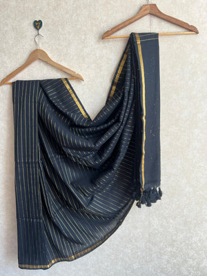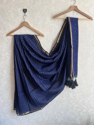 Introducing the Thanmaya Saree-VCM409, a stunning blend of tradition and elegance. Crafted from luxurious mulcotton, this saree drapes beautifully while offering comfort for all-day wear. Available in vibrant, bright shades that complement every complexion, each piece features coordinating color-matched tassels that add a refined finishing touch. The pallu showcases intricate embellishments with delicate sequins and ornate zari work, while a gleaming golden zari border frames the entire saree with timeless sophistication. Perfect for celebrations, festivals, or special occasions, this saree effortlessly elevates your ethnic wardrobe with its exquisite craftsmanship and eye-catching details.