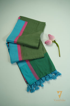Colour: Green saree with blue border